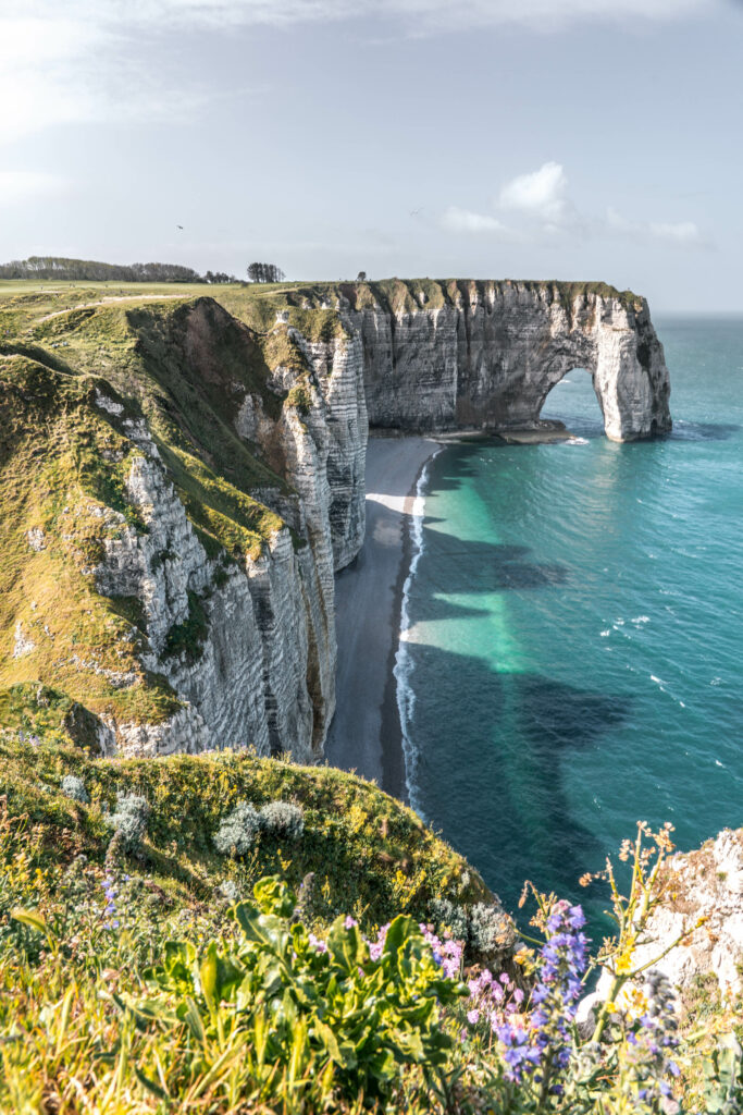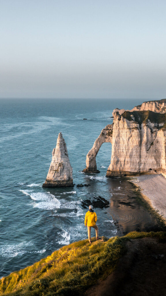 Direction la Normandie pour une ambiance totalement différente. Les falaises d’Étretat offrent une randonnée en bord de mer parmi les plus belles du pays.