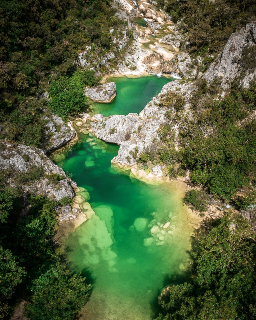 Ici, on évolue dans un canyon sec, entre falaises calcaires, passages étroits et ambiance méditerranéenne. C’est un lieu encore relativement préservé, ce qui renforce le sentiment d’aventure.