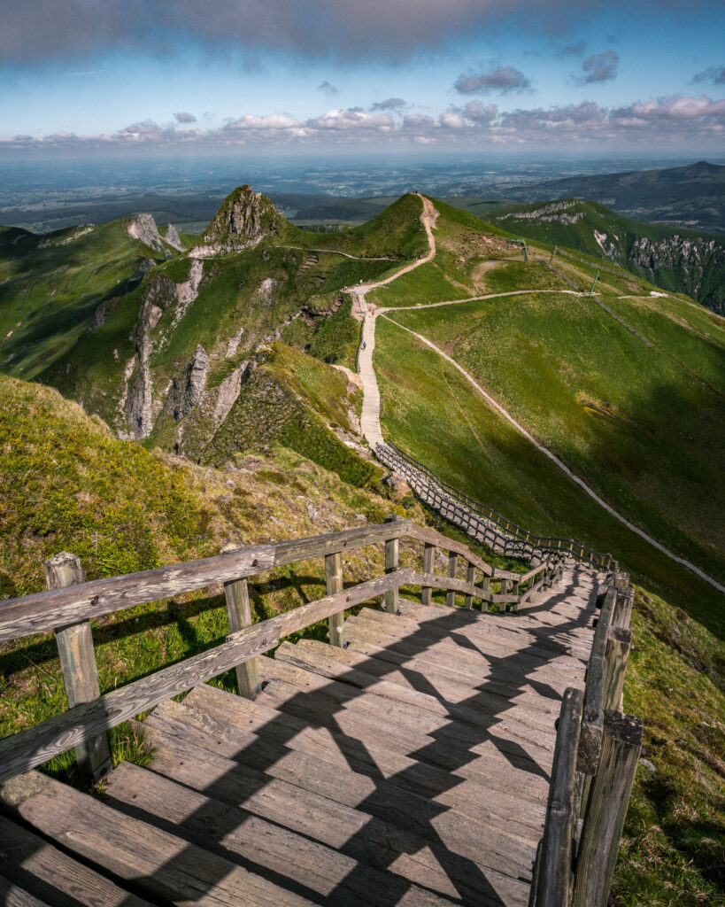 Lors de notre ascension, nous avons été frappés par les paysages volcaniques et les crêtes qui rappellent parfois les Alpes. La vue au sommet est incroyable, avec un panorama à 360° sur les monts d’Auvergne.