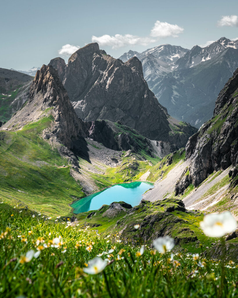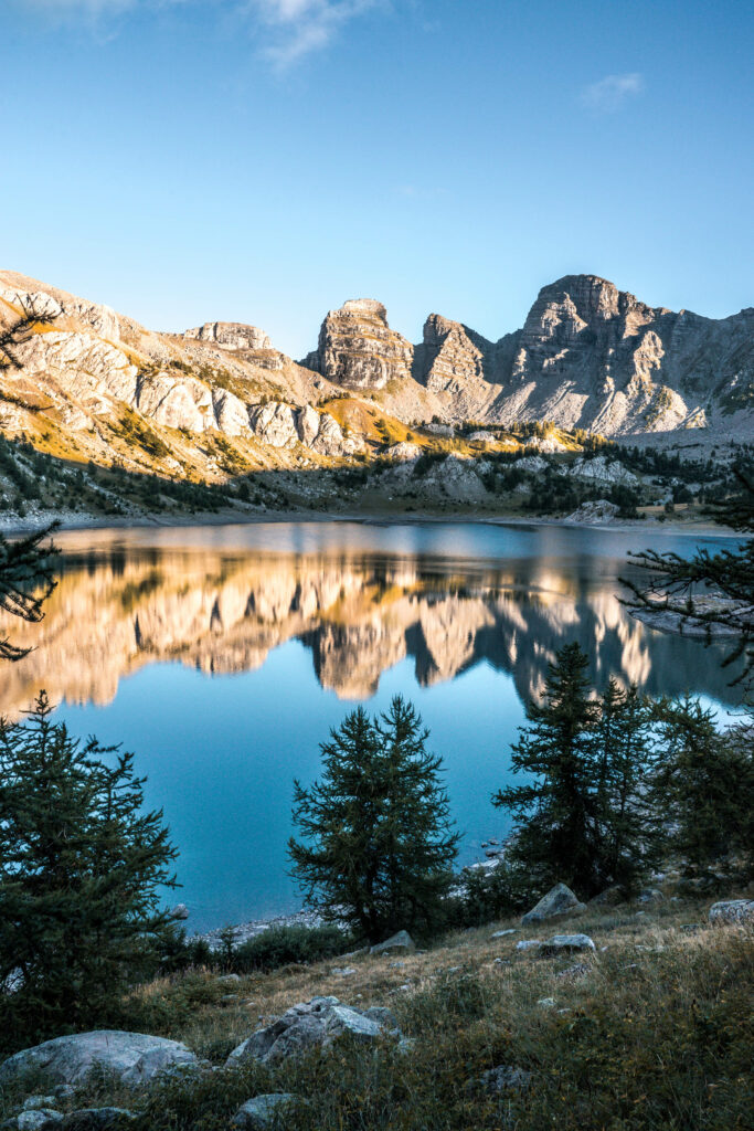 Situé dans le parc national du Mercantour, ce lac naturel d’altitude offre un décor exceptionnel, entouré de sommets et de formations rocheuses impressionnantes. Ce que nous aimons particulièrement ici, c’est l’ambiance à la fois douce et sauvage, avec des lumières magnifiques en début et fin de journée.