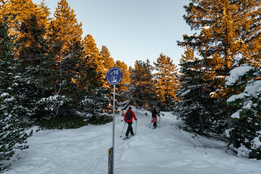 La randonnée en raquettes est une activité parfaite l’hiver. Elle permet de continuer à explorer la montagne, même quand les sentiers disparaissent sous la neige. C’est une expérience différente de la randonnée estivale : plus silencieuse, parfois plus exigeante, mais toujours magique.