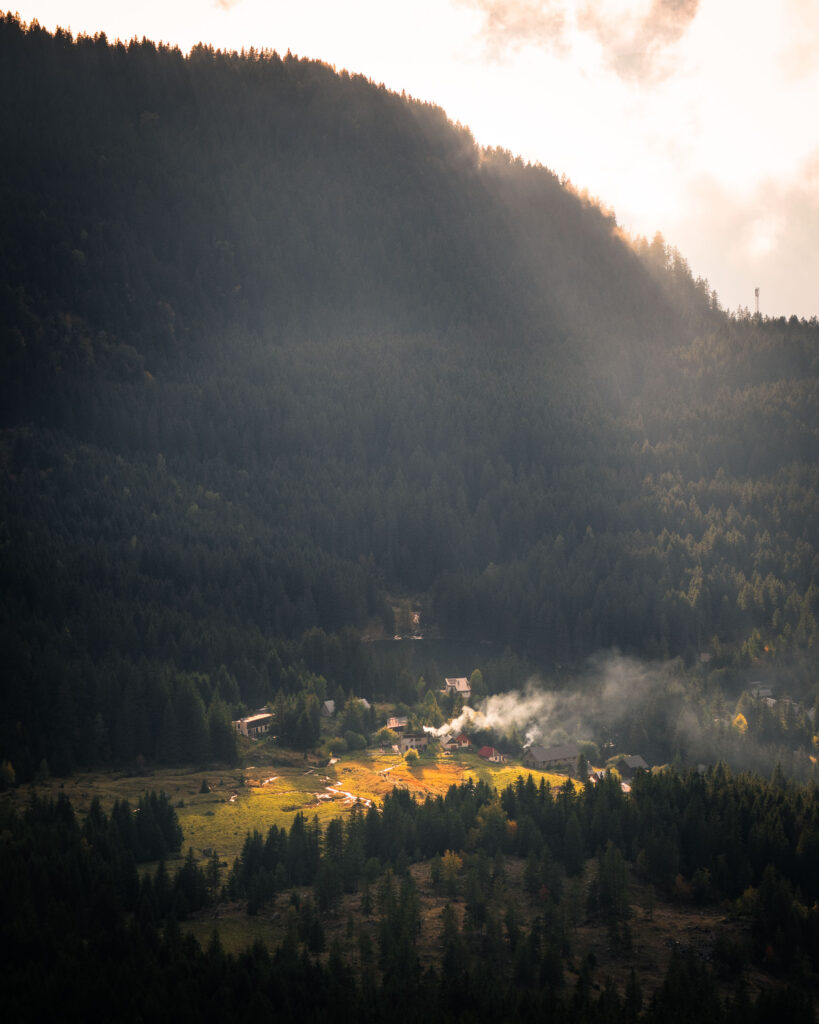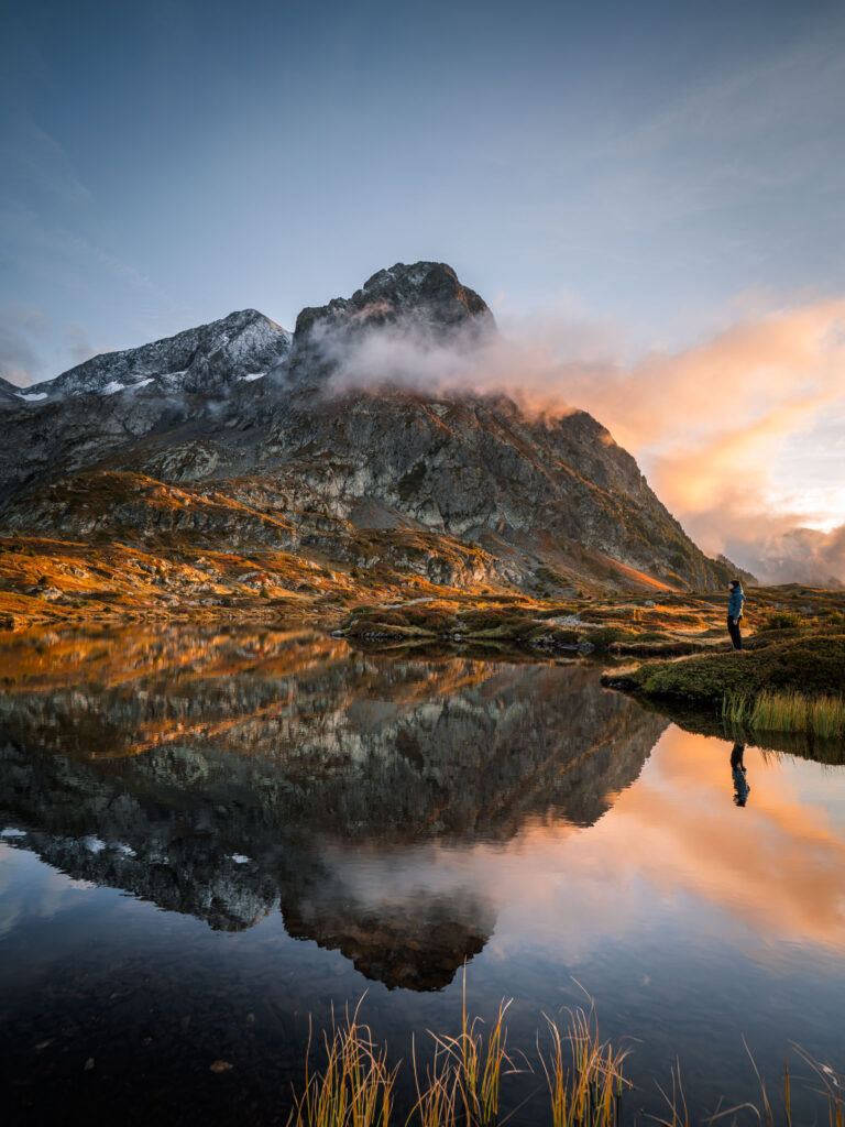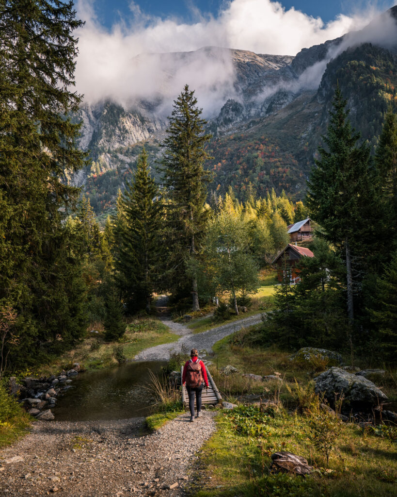 Avant même d’entamer la montée vers le plateau, je vous conseille vivement de faire un détour par le hameau du Poursollet et son lac. L’ambiance y est unique : souvent enveloppé de brume, le lieu évoque les grands espaces canadiens. Prenez le temps d’en faire le tour (dans le respect des zones protégées) pour profiter de la beauté du site. Les petits chalets du hameau, tous privés, ajoutent une touche pittoresque au pied du Taillefer.