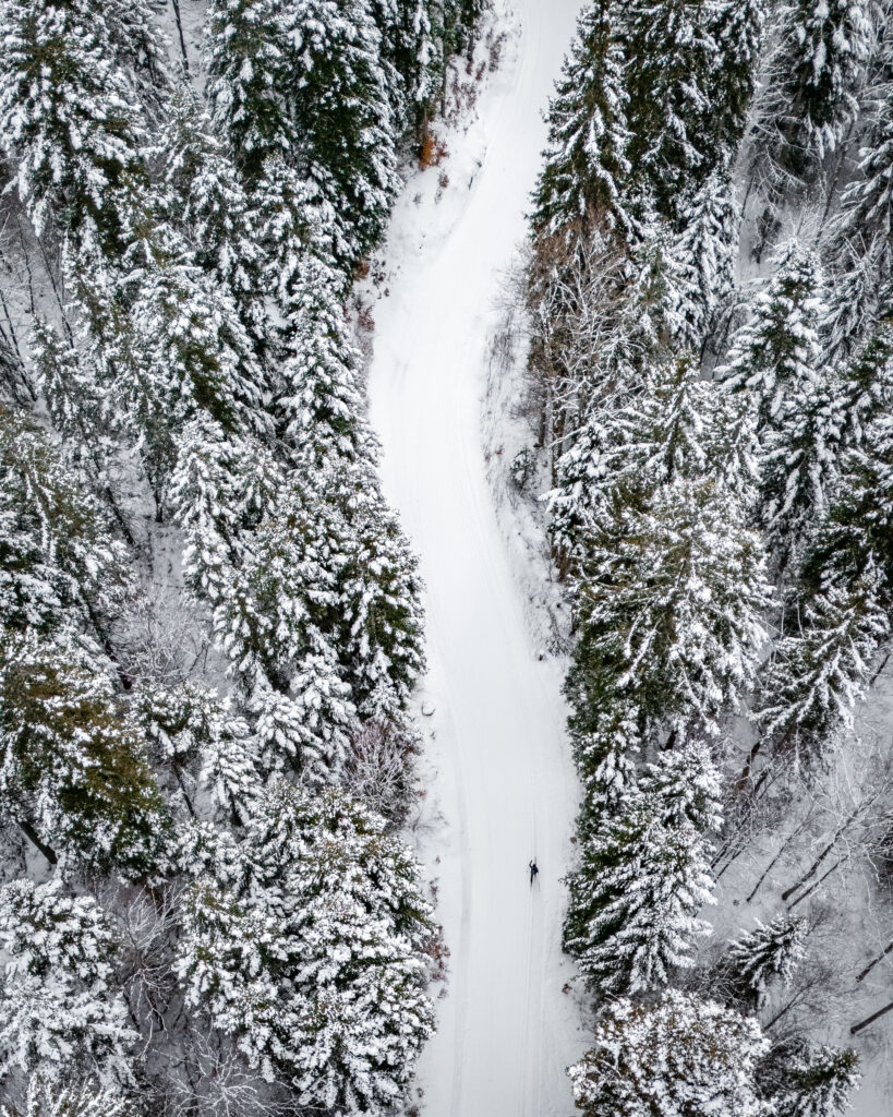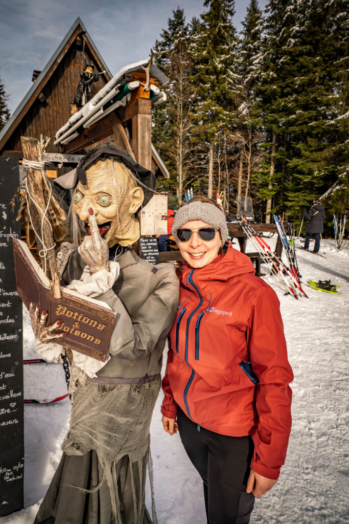En tant que débutant, nous voila lancés sur la piste bleu Malaterre. Les skis glissent doucement sur la neige fraiche de la nuit, le rythme se cherche, le souffle s’accélère un peu dans la montée mais rien d’inaccessible. On progresse tranquillement au milieu des sapins chargés de neige ce qui donne l’impression d’avancer hors du temps.