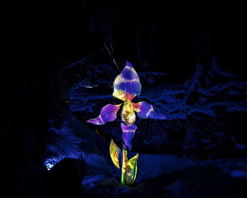 Sur un parcours d’environ 1,2 km, le sentier balisé et éclairé plonge petits et grands dans une forêt illuminée, rythmée par des jeux de lumière, des sons et un récit captivant. Une expérience totalement incroyable.