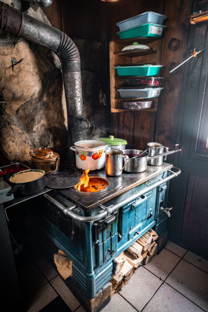 Ici, pas d’eau courante ni d’électricité. On dîne à la bougie, on se chauffe au feu de bois et on savoure une cuisine de montagne généreuse, préparée avec des produits locaux. Alice, vêtue de sa tenue traditionnelle, participe pleinement à l’atmosphère hors du temps.