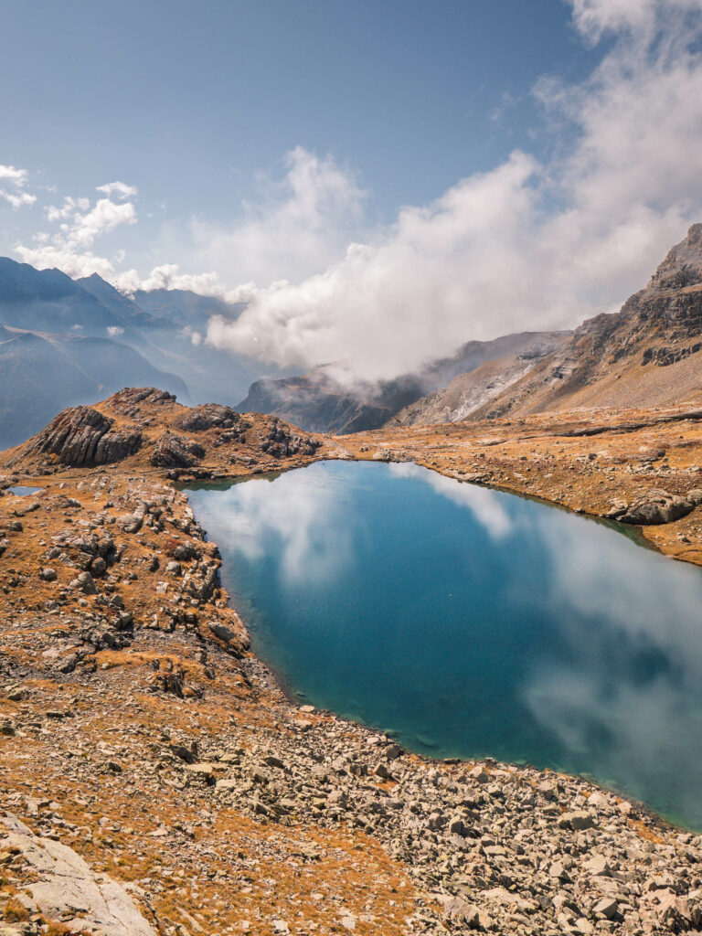 C’est un véritable écrin au cœur des Écrins, protégé, silencieux, et d’une beauté brute. En prenant un peu de hauteur, on aperçoit parfois des bouées de relevés scientifiques, preuve que ce site sert aussi d’espace d’observation et de recherche. Lors de notre passage, après un moment sous un grand ciel bleu, la brume est montée pour nous offrir le plus beau des spectacles.