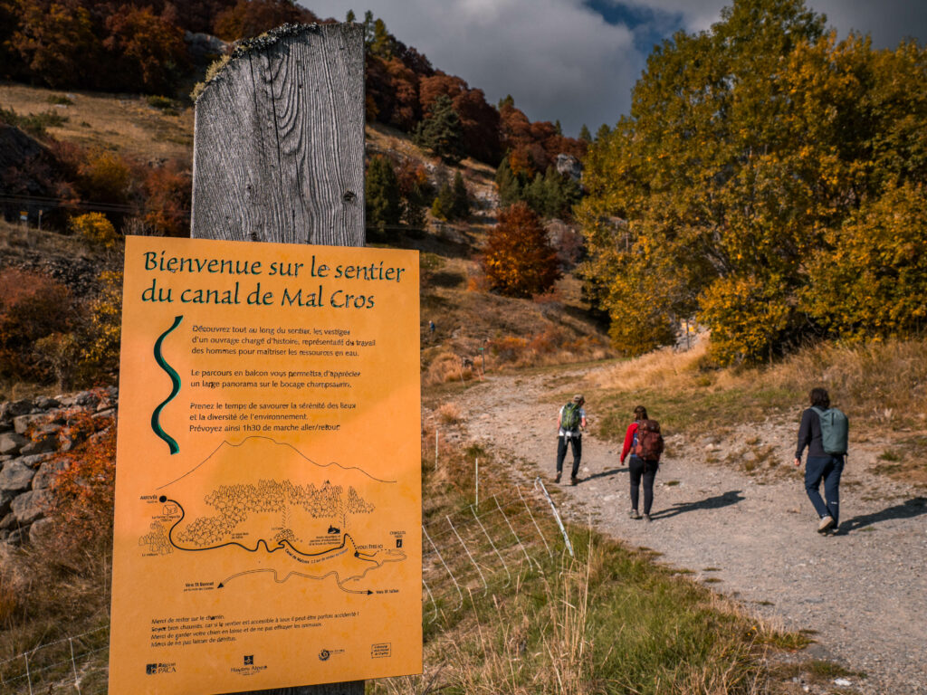 Pour l’après midi, direction une nouvelle randonnée accessible et pleine de charme, le sentier du canal de Mal Cros. Ce chemin, suspendu au-dessus de la vallée, suit le tracé d’un ancien canal d’irrigation construit au XIXe siècle pour alimenter les prairies et cultures du fond de vallée.