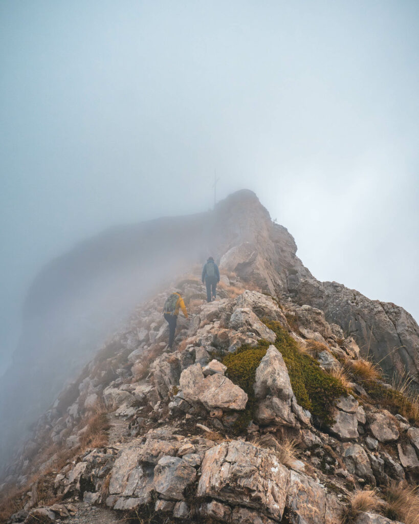 Dans notre cas, ce fut la brume automnale. Une mer de nuages dans la vallée prenant petit à petit de l’altitude pour venir couvrir les sommets, dont le Palastre.