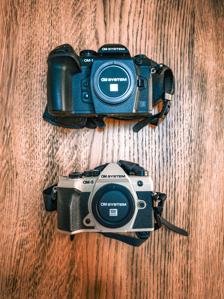Aujourd’hui, et depuis l’arrivée de Noa, je suis passé chez OM System et retourné sur un boitier au format micro 4/3. J’ai l’OM1 MARK II et le OM5 MARK II. Pourquoi ce choix? Pour la compacité (pas forcément du boitier, mais des optiques), le poids et surtout la polyvalence. Je shoote principalement en montagne, et maintenant que Noa nous accompagne de plus en plus, il fallait faire de la place pour remplacer par des couches. Je plaisante mais cela illustre parfaitement la différence. Mon OM1 MarkII avec un 12-100 f4 (équivalent 24-200 f4) pèse quasiment aussi lourd que juste le 24-105 f4 que j’avais avant 😀